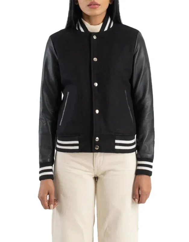 Julie Maroon & Black Hybrid Varsity Jacket for Women