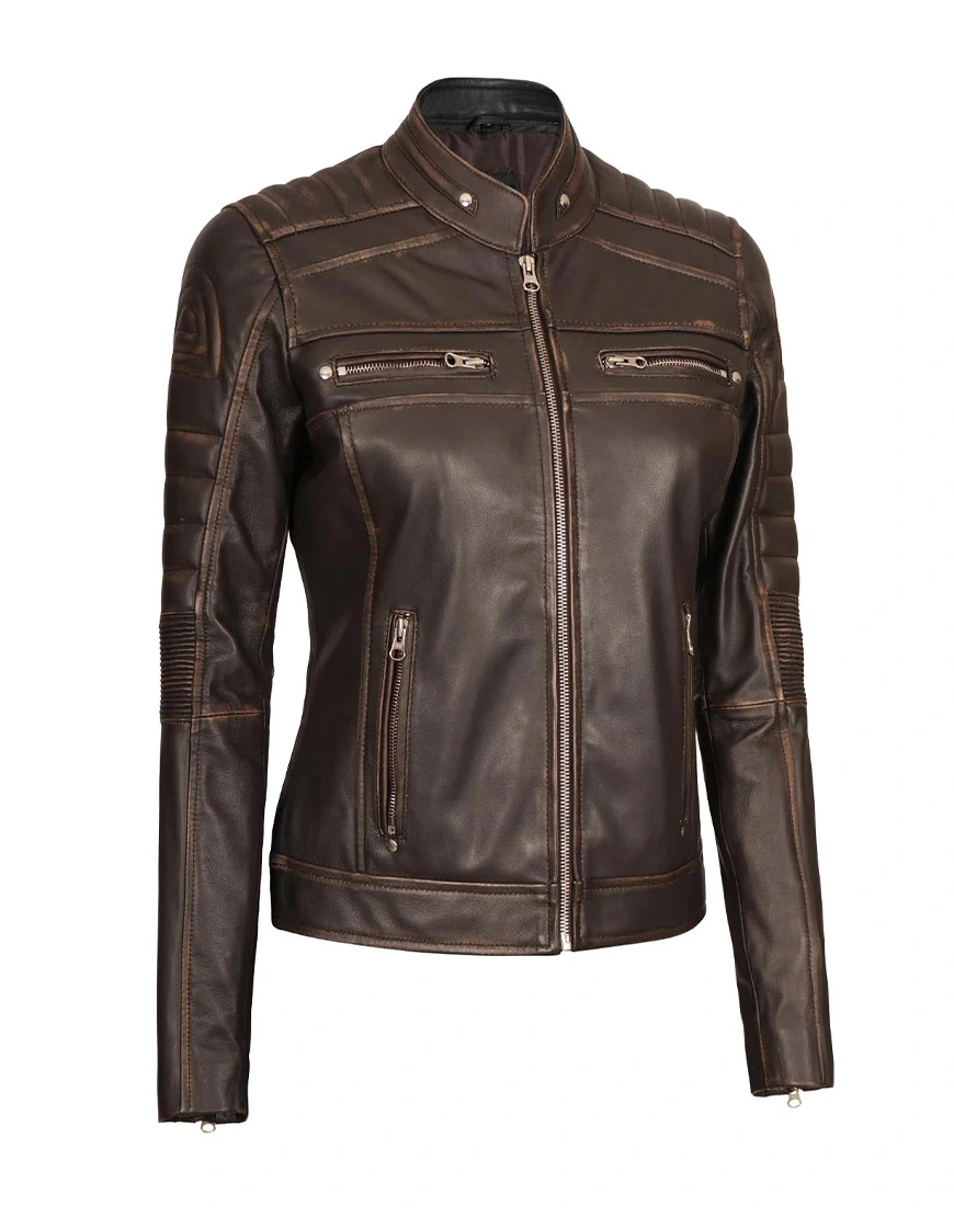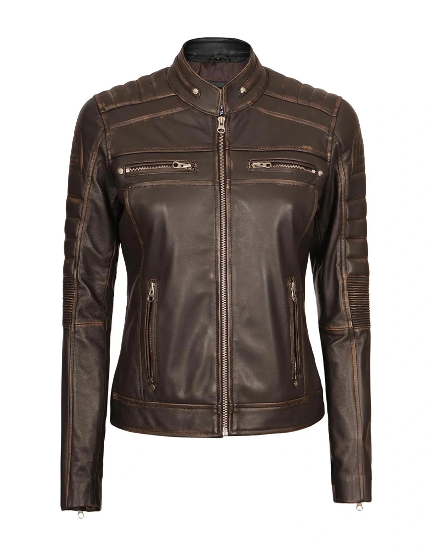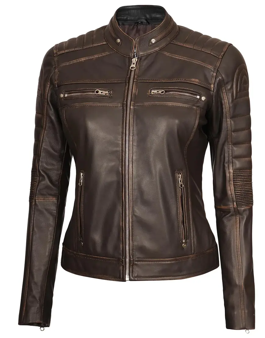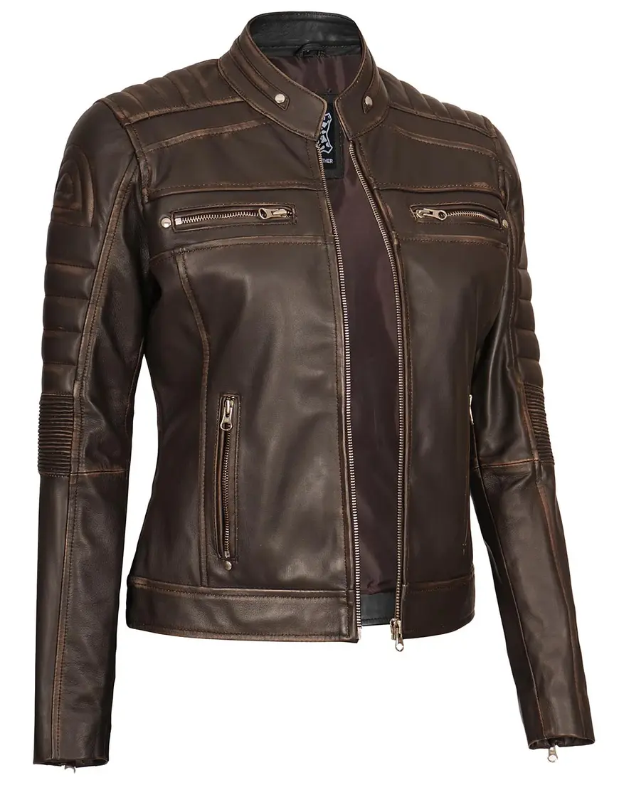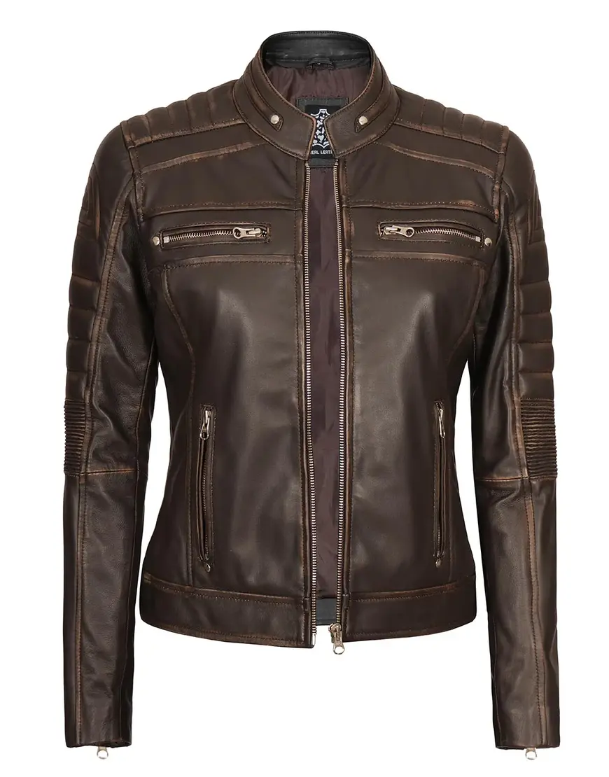 Upgrade your style with the Austin Dark Brown Motorcycle Leather Jacket for Women, a perfect blend of sophistication and biker-inspired edge. This iconic piece in a rich dark brown hue is meticulously crafted from 100% lambskin leather, offering both elegance and durability.