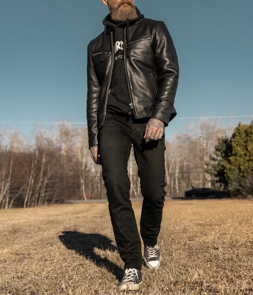 “Feels like a jacket straight out of a vintage racing film. The cowhide leather has amazing texture and really makes the piece stand out. Great fit, great finish, great ride companion.”