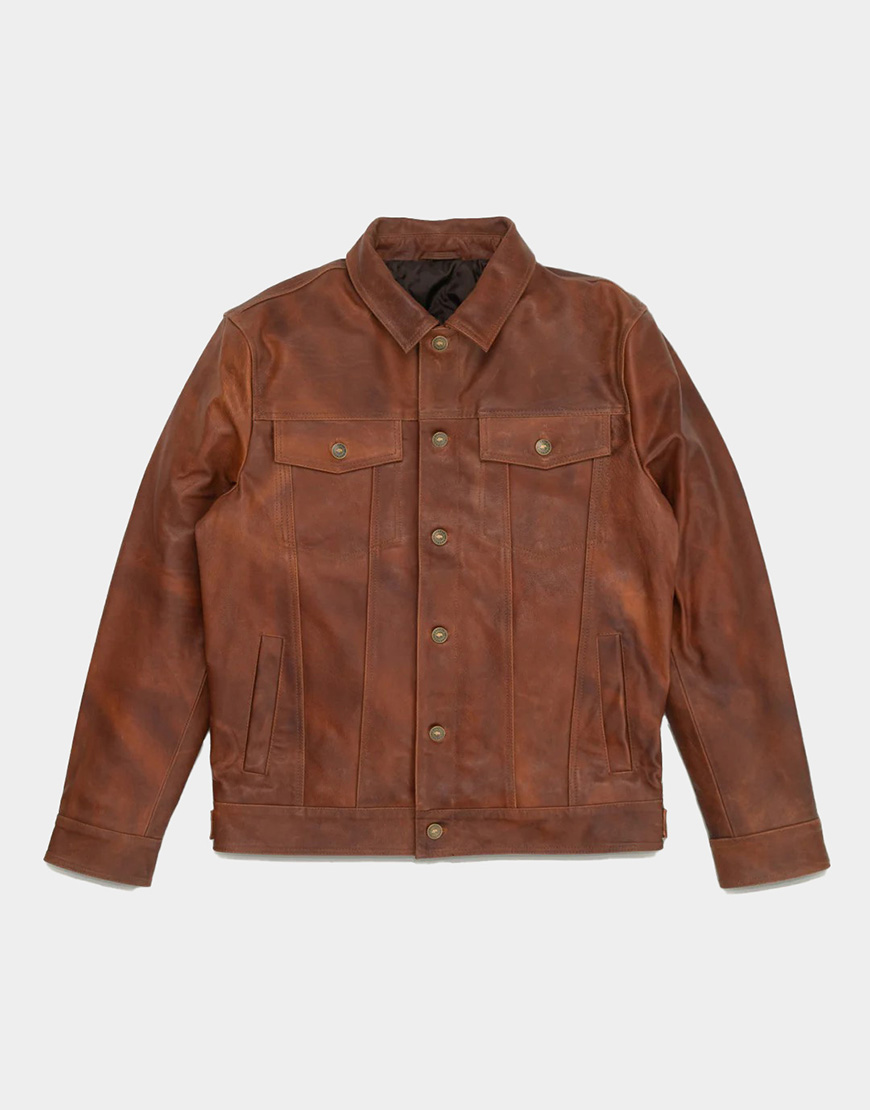 Meet the Gloss Leather Driggs Leather Jacket – a modern take on the classic denim jacket, reimagined in luxurious full-grain cow leather.