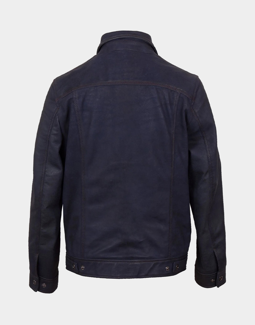 Elvis Men’s Black Antique Denim Style Leather Jacket