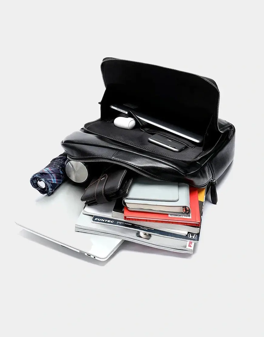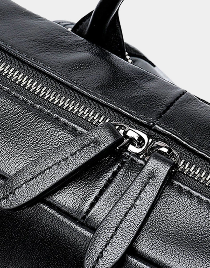 I use this daily for work. The leather is thick, the zippers are smooth, and it fits my 15” laptop easily. Looks sharp in meetings.