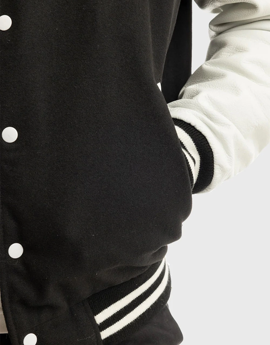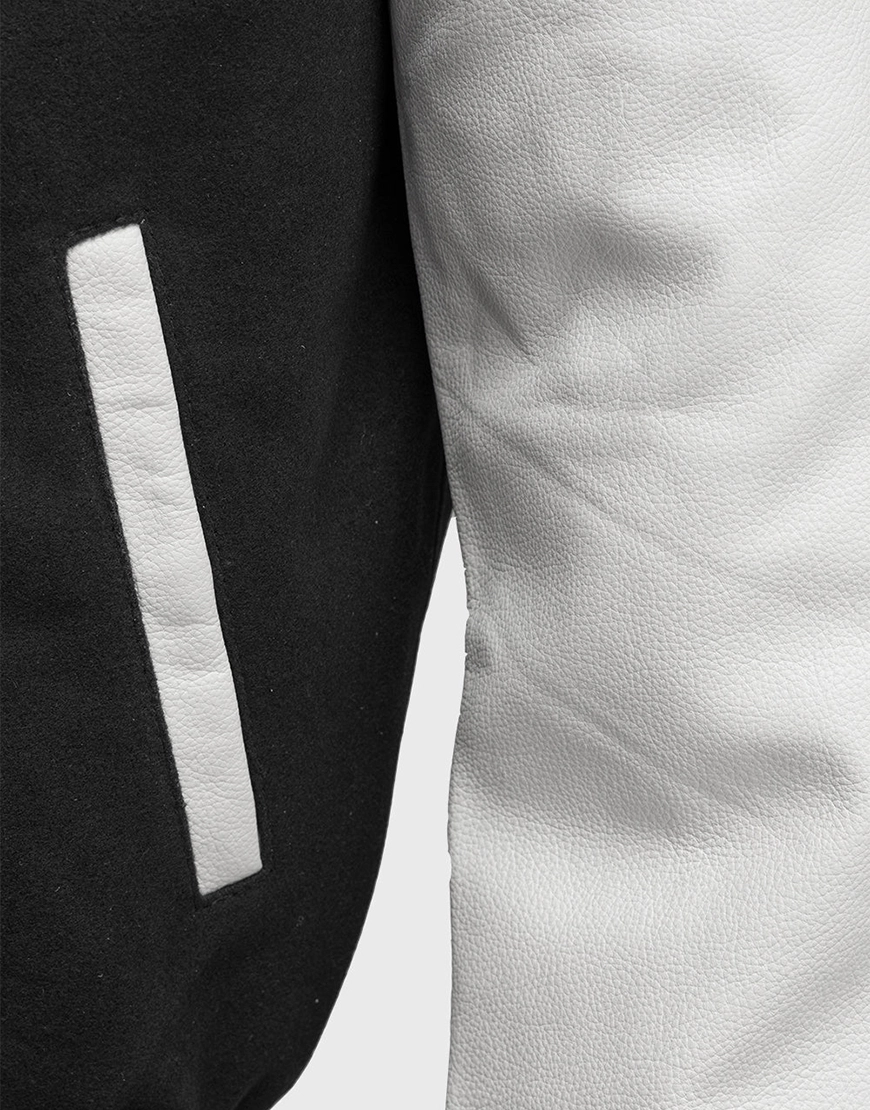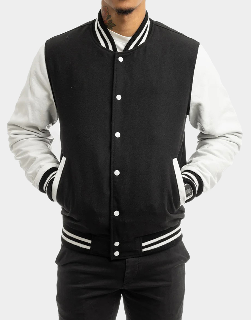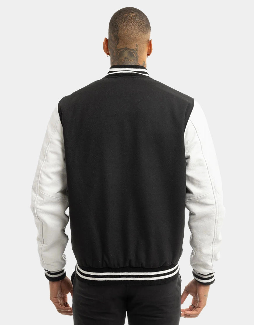 Wool Blended Black and White Men’s Bomber Jacket