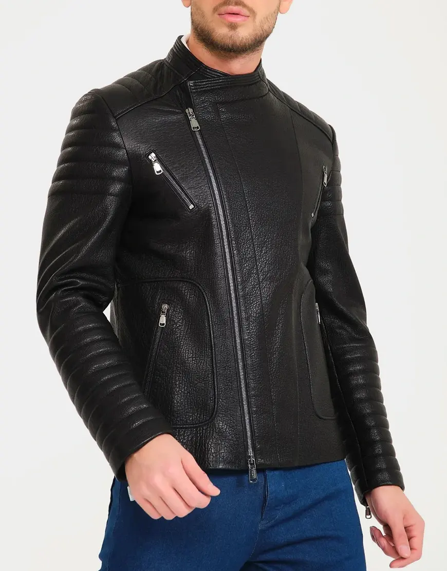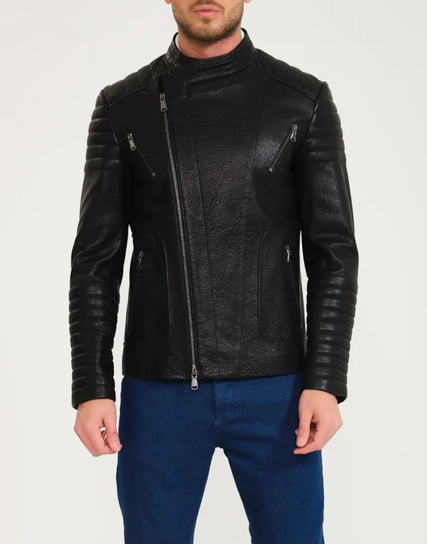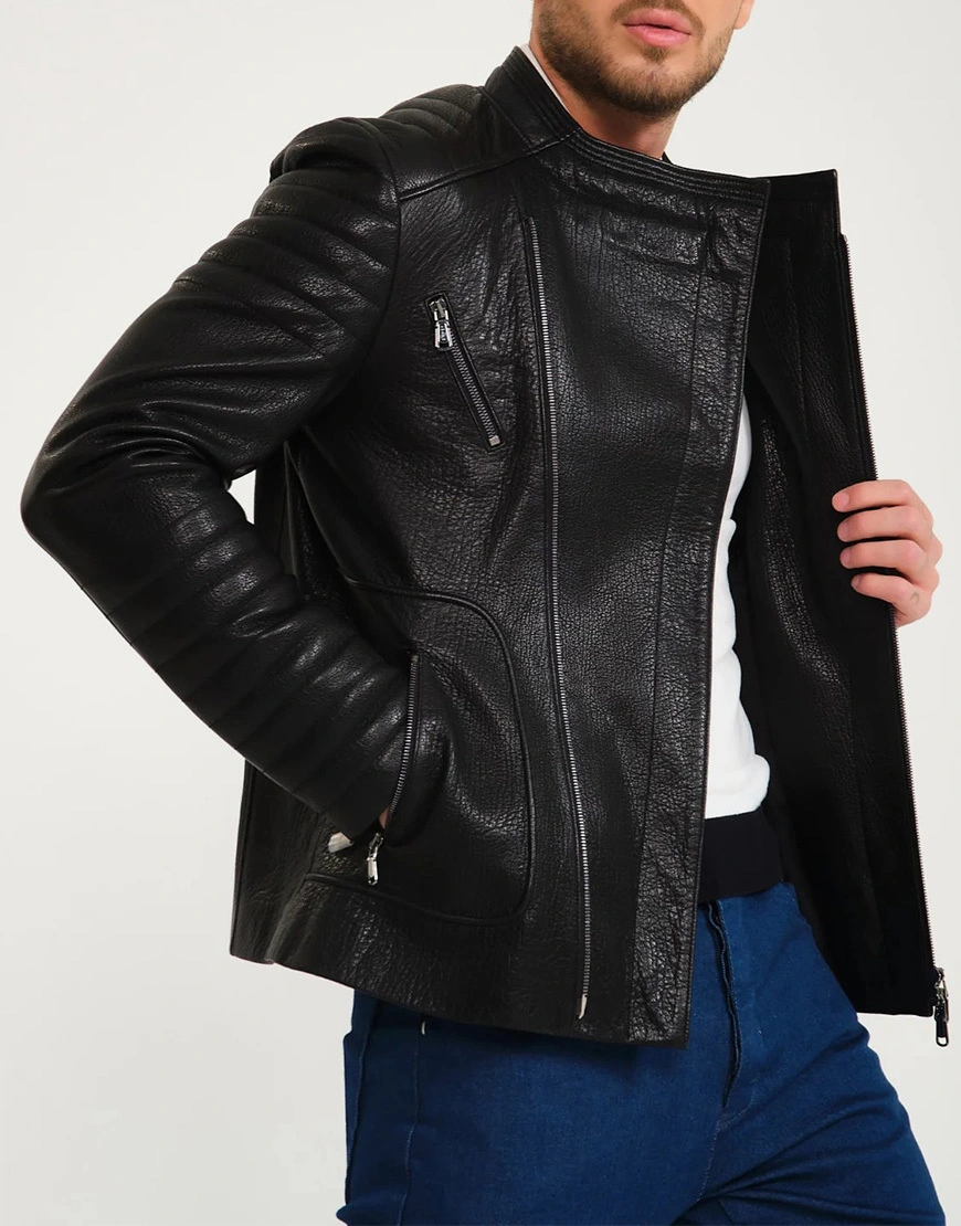 The elegant black color features timeless elegance that is perfect wear for a modern man. The round and stand-up collar adds a modern touch that boosts your style and confidence. This men’s black leather jacket is designed with a zipper closure giving you a secure fit with a detailed stitching at the waist and sleeves – for both warmth and comfort.