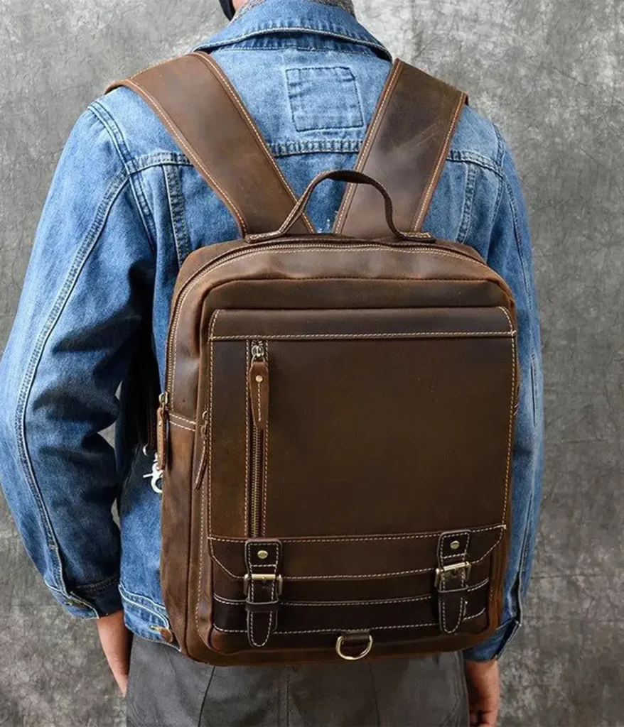 I get so many compliments on this backpack! The leather is thick and durable, and the craftsmanship is impeccable. It fits my laptop, documents, and other essentials with ease!