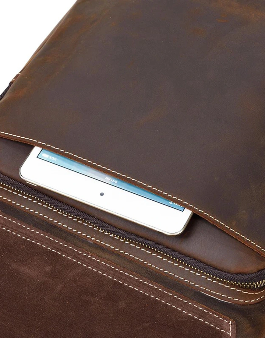 This mens leather laptop backpack is made of premium solid hardware featuring YKK zippers, durable stitching, soft cotton lining that ensures that it will last for years.