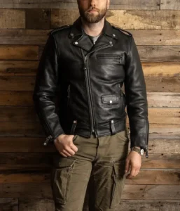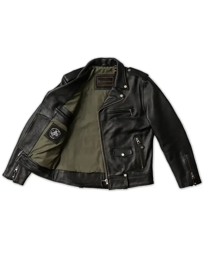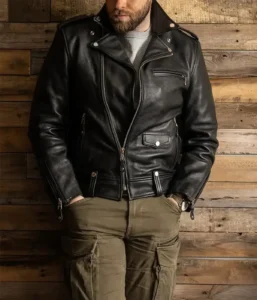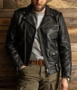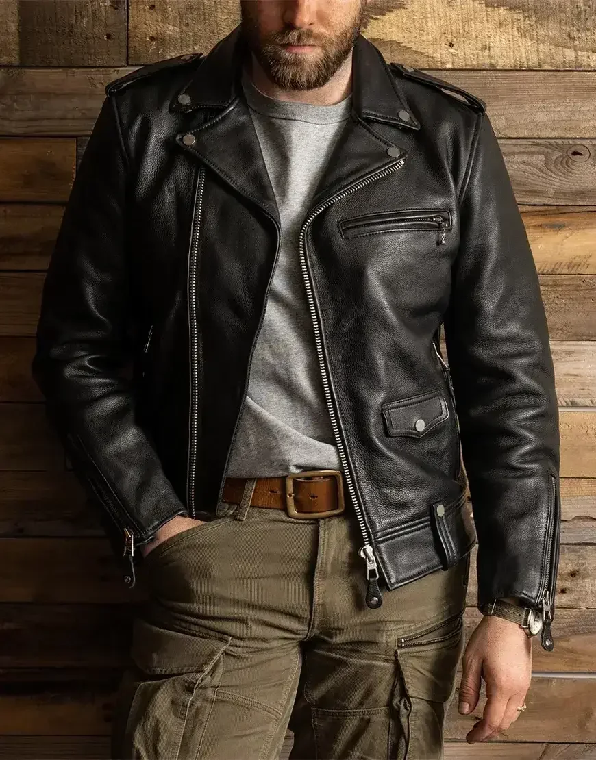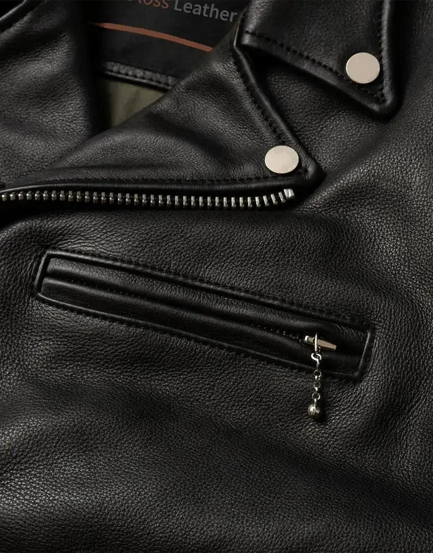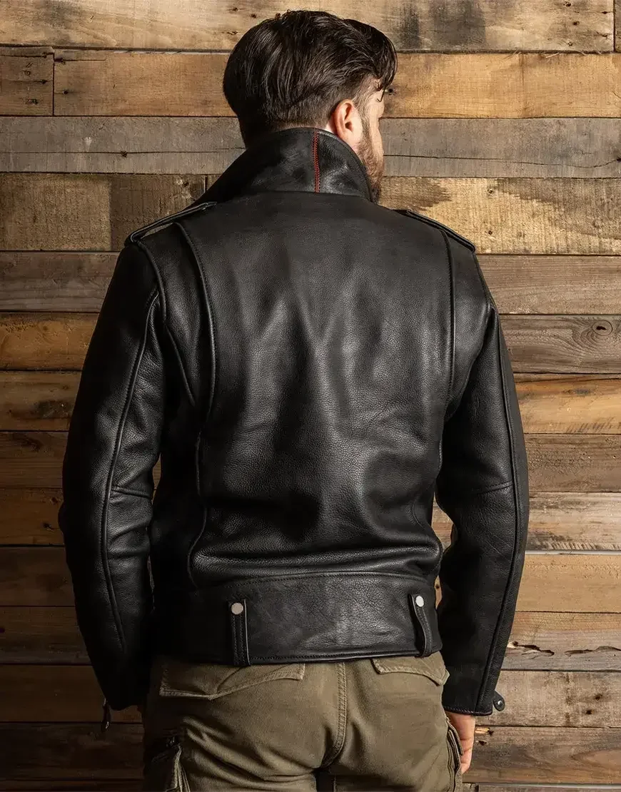 Crafted from 100% full-grain semi-vegetable-tanned cowhide leather with a hefty thickness of 1.5mm, this jacket boasts a rugged and timeless appeal, making it a standout piece among men’s motorcycle black leather jackets.