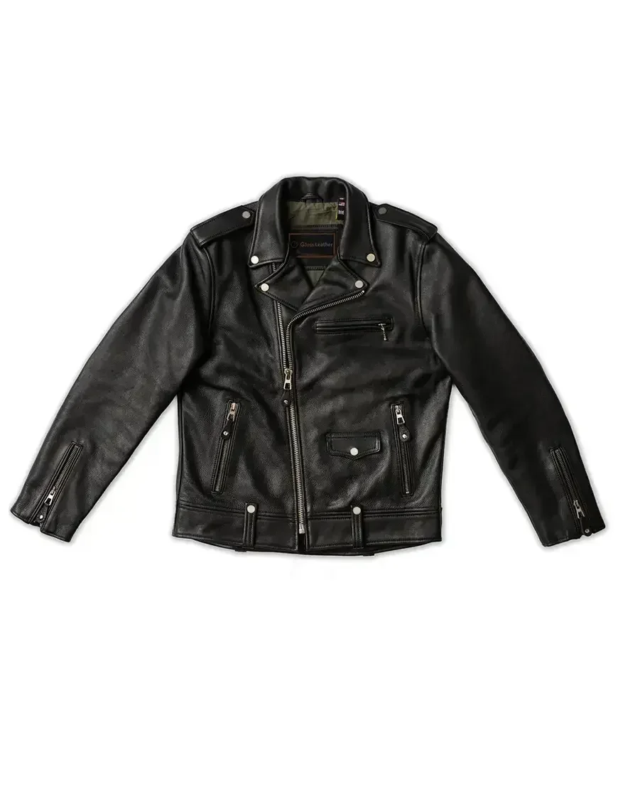 Step into the past with the Widowmaker—a true embodiment of enduring style, perfect for those who appreciate the fusion of vintage aesthetics with modern functionality. This black leather motorcycle jacket is not just a garment; it’s a statement of timeless elegance and rugged durability.