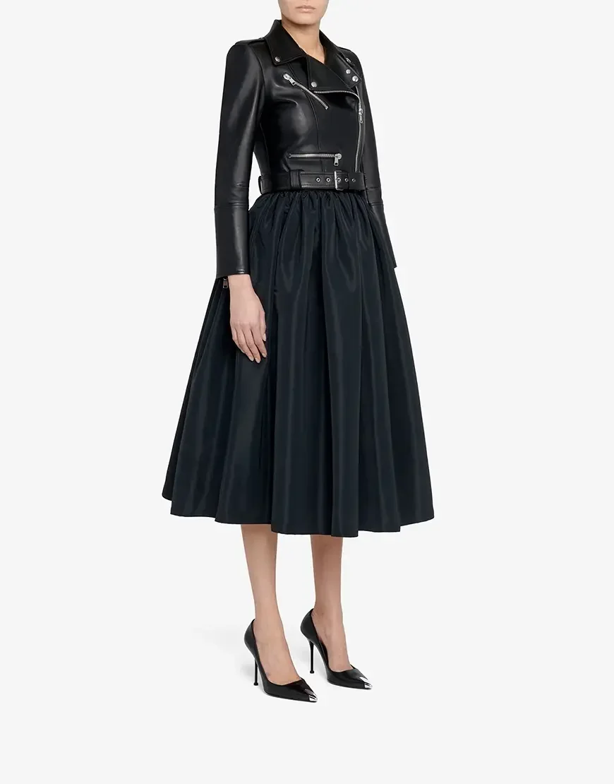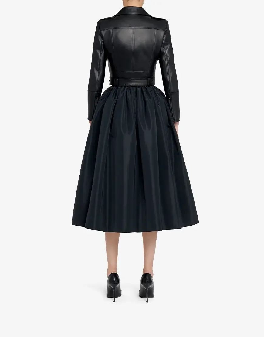 The belted waist hugs perfectly, and the silver hardware adds just the right touch of sophistication.